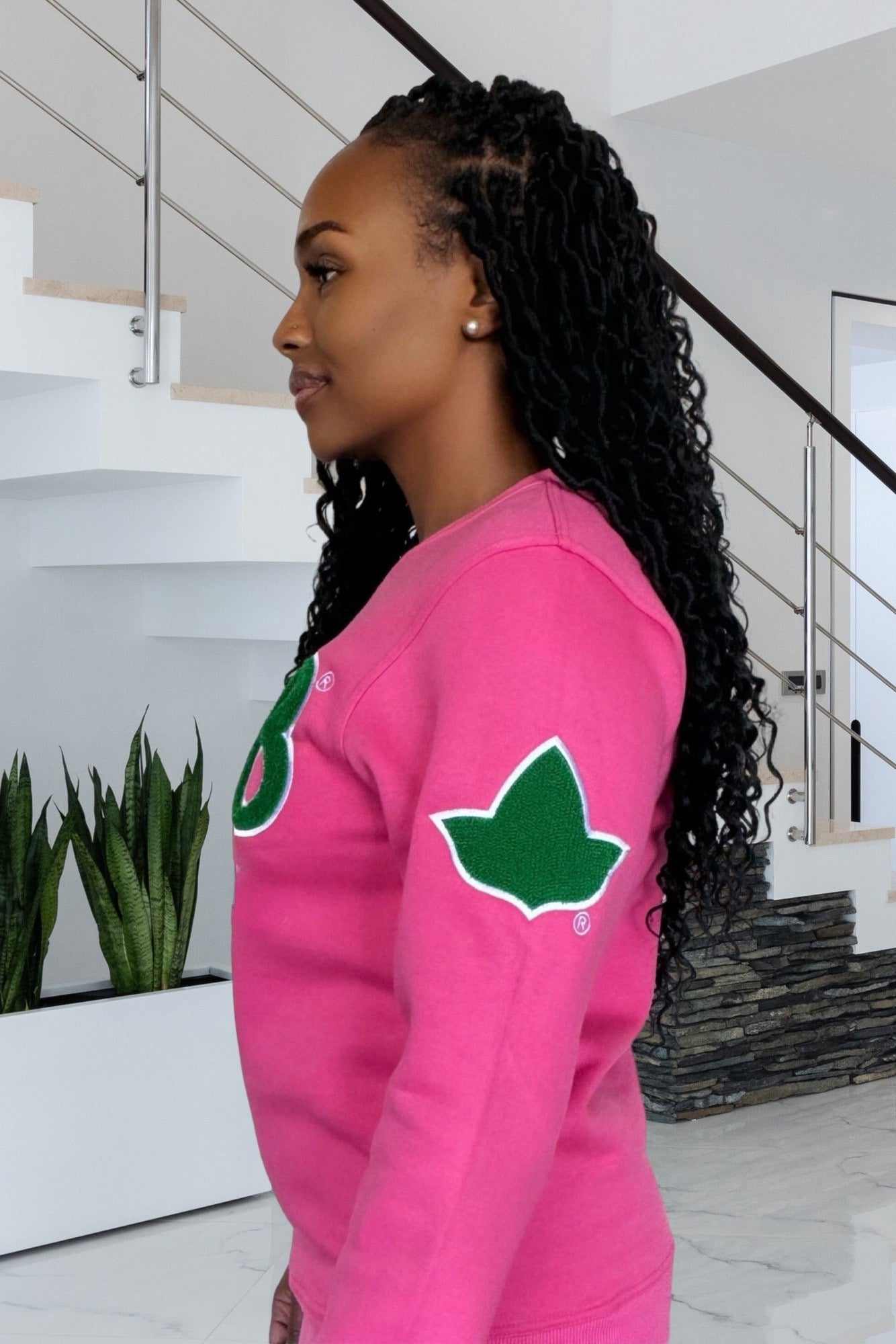 Experience the comfort of our soft crewneck sweatshirt. This unisex fit sweatshirt features a unique, high quality chenille Ivy design on the left sleeve, embodying the proud spirit of Alpha Kappa Alpha Sorority. Perfect for a cozy feeling without sacrificing style.
