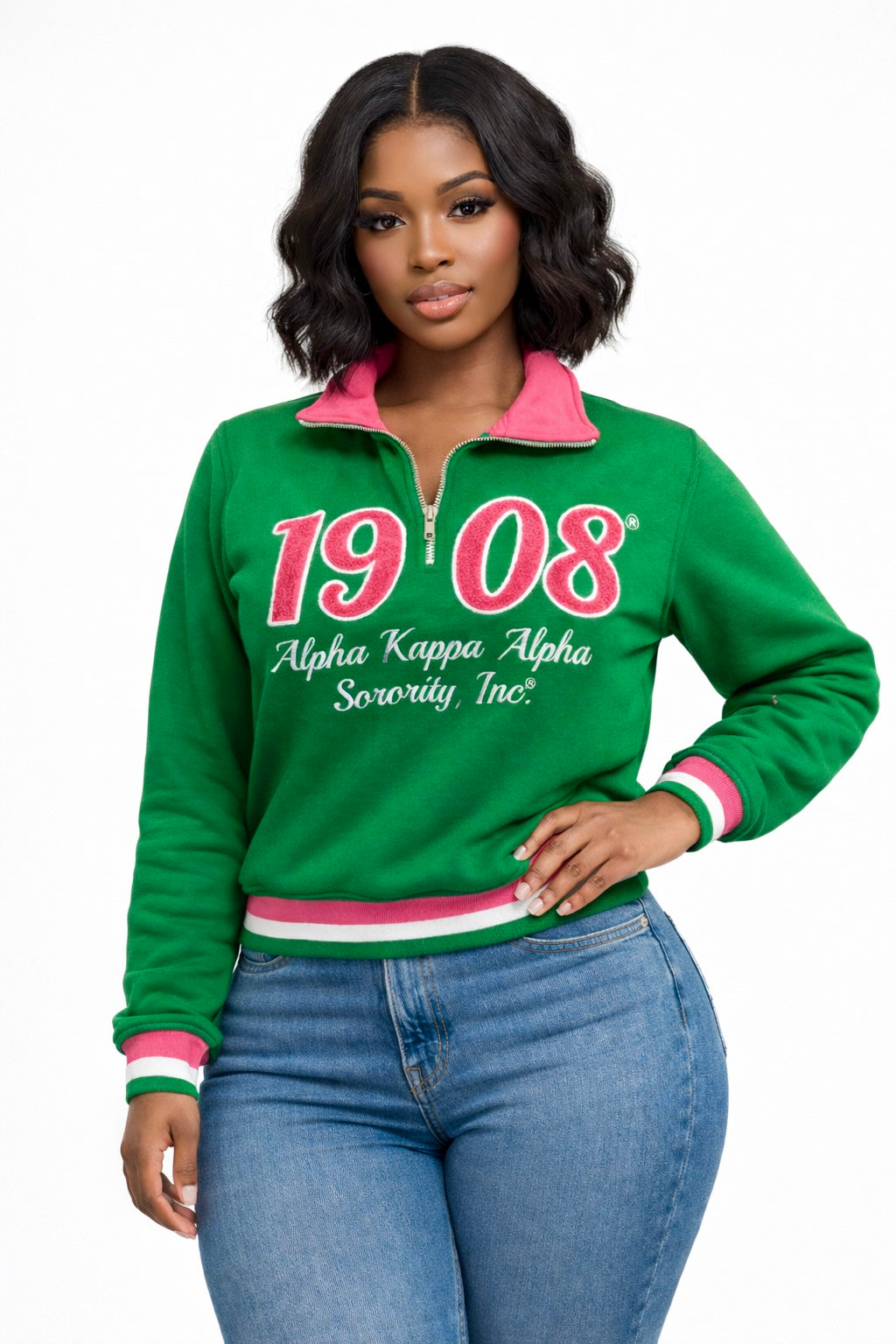 Experience the comfort of our soft crewneck sweatshirt. This semi-cropped, waist-length, relaxed fit sweatshirt features a unique, high quality chenille design, embodying the proud spirit of Alpha Kappa Alpha Sorority. Perfect for a cozy feeling without sacrificing style.