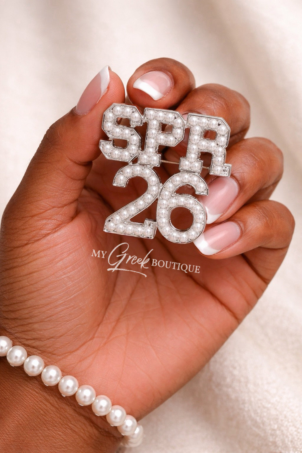 Our SPR ’26 Pearl Pin was designed to honor the Spring 2026 initiate class with timeless elegance. Featuring luminous pearl detailing set in polished silver-tone metal, this 2” x 2” statement pin blends tradition with sophistication.