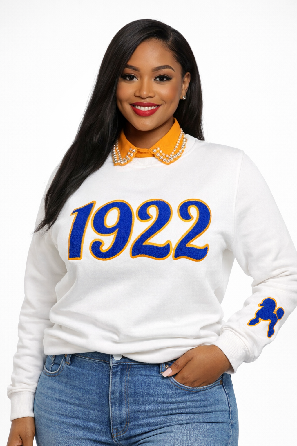 Step into timeless Sigma Gamma Rho style with this SGRHO poodle sleeve chenille sweatshirt.
