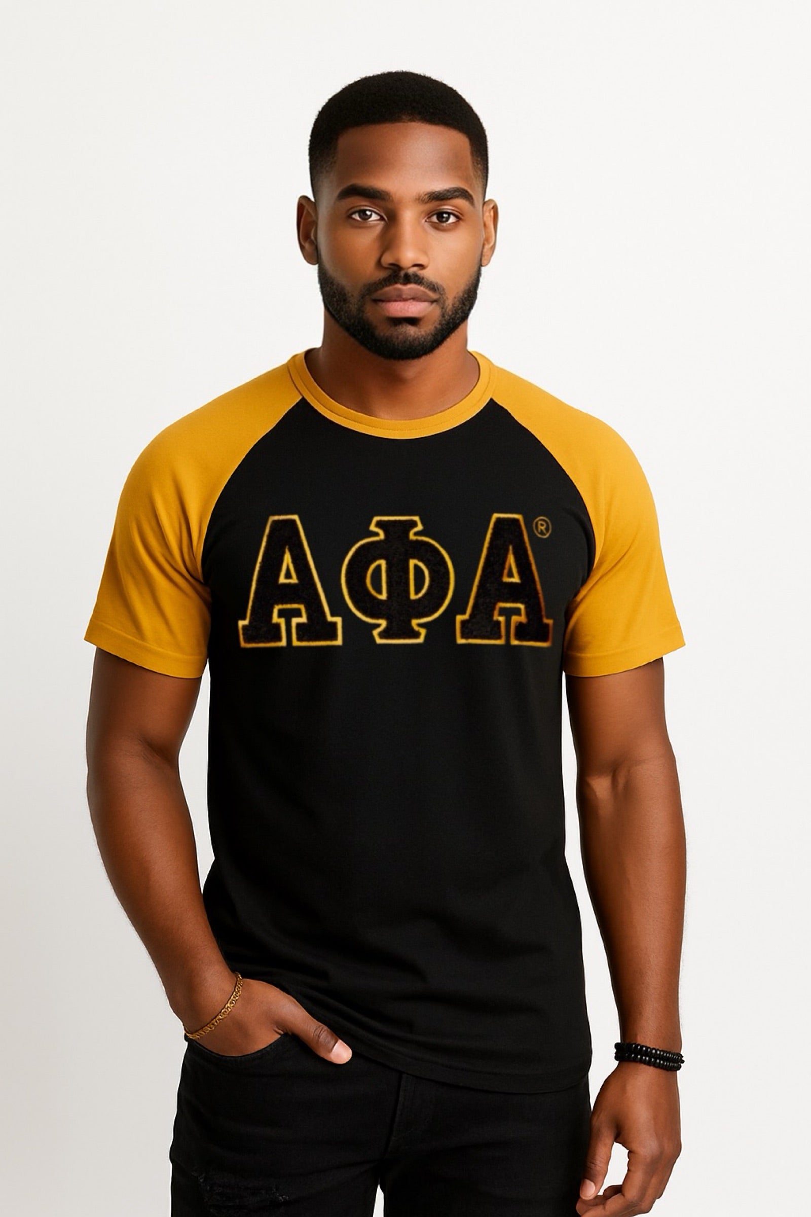 Show your Alpha pride in a premium raglan tee designed for clean lines, rich color, and everyday comfort. Made from a soft, durable cotton-polyester blend, this shirt features a deep black body paired with old-gold sleeves and collar for a bold, authentic Alpha aesthetic.